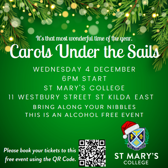 Please join us on Wednesday, December 4 for Carols under the Sails. This tradition brings together our community in Christmas cheer as we gather to sing Christmas carols led by our music students. Carols commence at 6pm. Reserve your spot here.